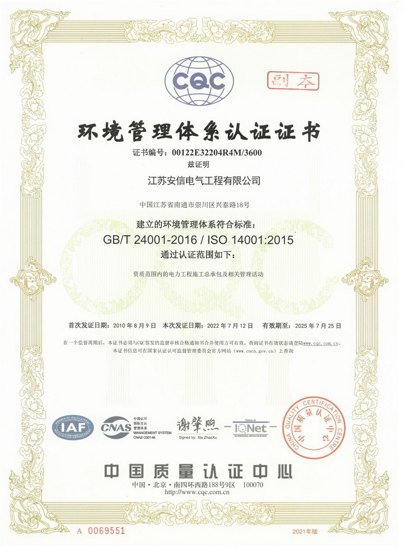 在創業之初,公司就堅持高起點的戰略思路,廣納賢才,集聚行業精英,創新發展,做優企業品牌。現已取得:承裝二級、承修二級、承試二級,電力工程施工總承包二級,輸變電工程專業承包二級,建筑工程施工總承包二級,建筑機電安裝專業承包二級,地基基礎專業承包二級資質證書,并通過了質量、環境、職業健康和安全管理體系認證,確保各項工作有序管控。